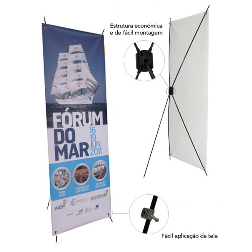 Prático, leve e acessível, o X-Banner é a escolha ideal para destacar a sua marca em exposições, feiras, eventos ou pontos de venda. Produzido com estrutura resistente e impressão digital em tela de alta qualidade, garante impacto visual a baixo custo.